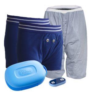 Disponibles en deux modèles – Boxers et Briefs – ils n’absorbent pas de liquide mais sont conçus pour le traitement uniquement, avec des fils de capteur intégrés pour le raccordement à l’alarme.